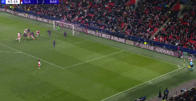 比赛开打后不久,巴萨的城门便宣告失守,第10分钟,布拉格斯拉维亚角球机会,霍莱什前点头球摆渡,后点的库谢伊卡住身位近距离撞射入网,0:1!这是巴萨队史第一次连续10场欧冠都遭遇了丢球。第29分钟,埃里克禁区外远射一脚,斯塔涅克飞身扑出皮球第34分钟,埃里克-加西亚直传,拉菲尼亚脚后跟顺势一嗑,德容肋部不停球斜塞,费尔明小角度劲射击中门将反弹入网,1:1!